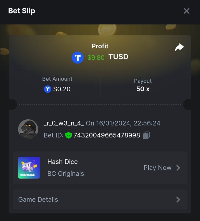 1. Crash x99 .05 https://hash.game/#/sd/124NMZ6TN1T0CR JOHNWILD x50 https://hash.game/#/sd/124NO3APWVOK23 Buy at least 25 lottery tickets and place a bet on the lottery SPORTBET 1.5x ODDS 1USD BET TICKET ID: 2432895037160431791 DEPOSIT 20USD WAGER 2000USD
